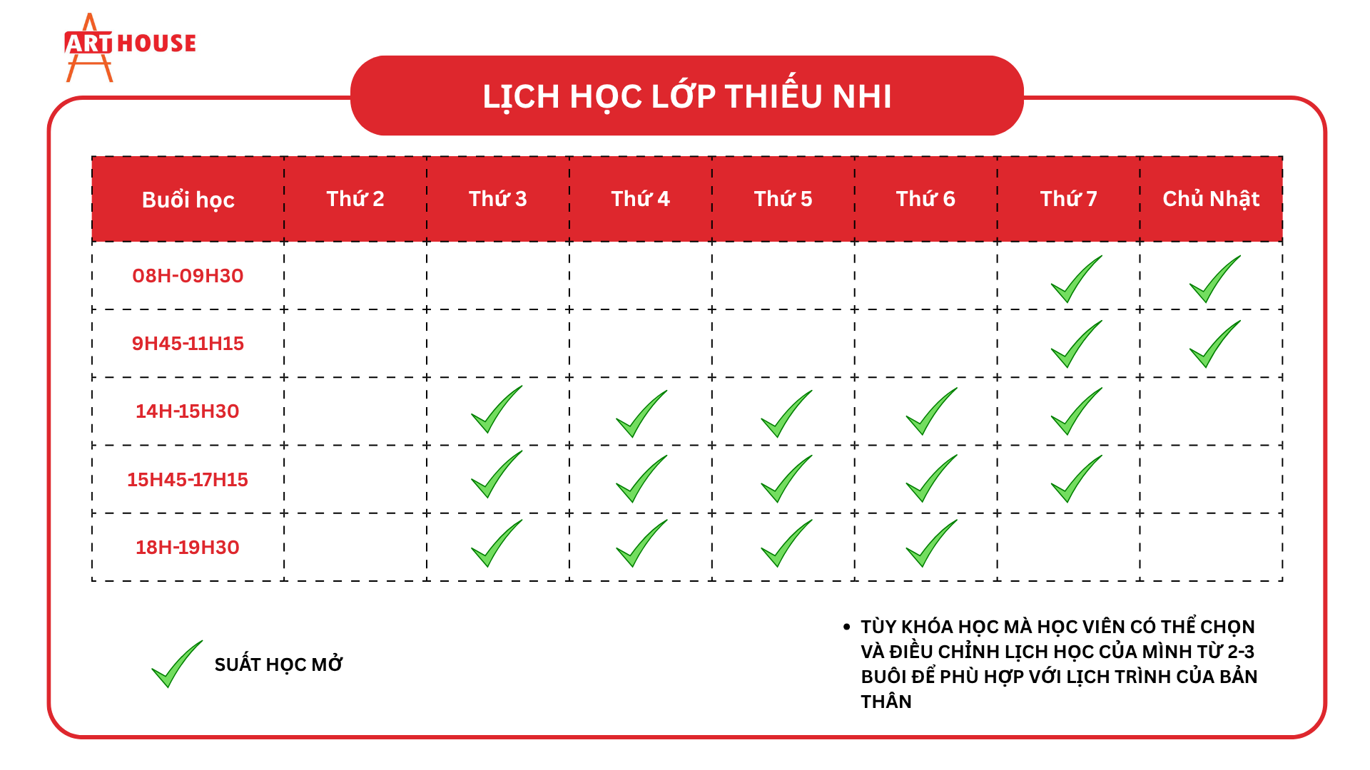 • Lịch học linh hoạt từ 1-3 buổi/tuần tùy theo nhu cầu.